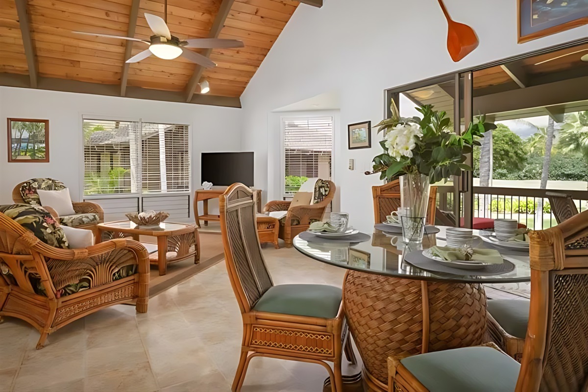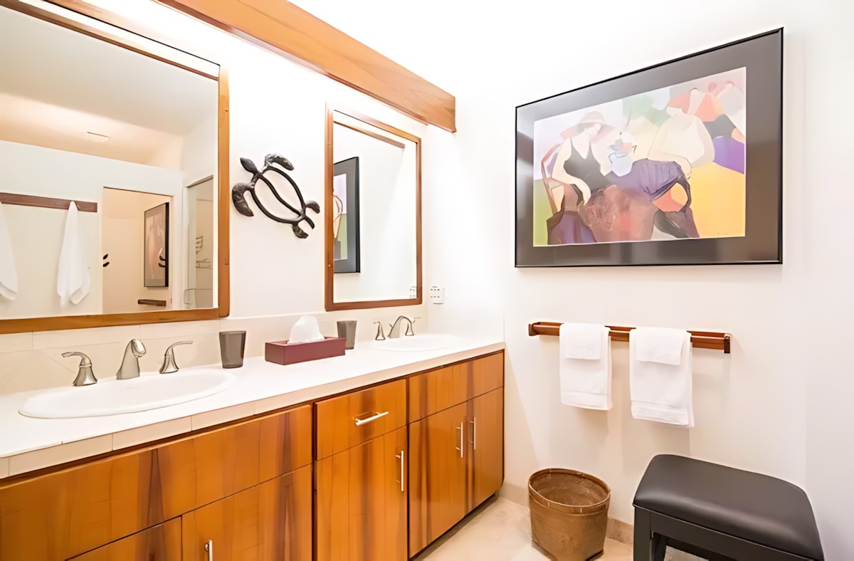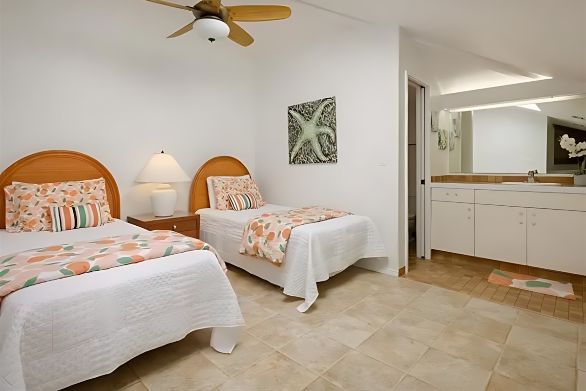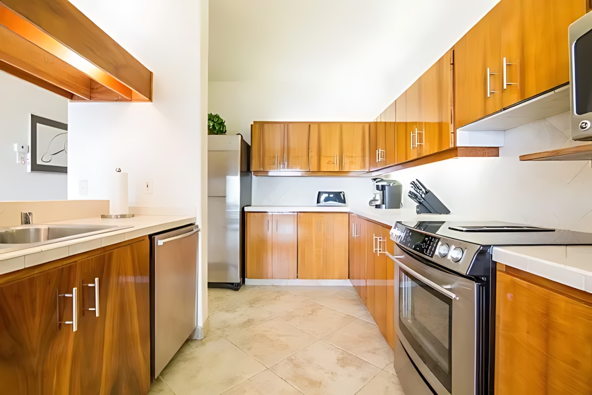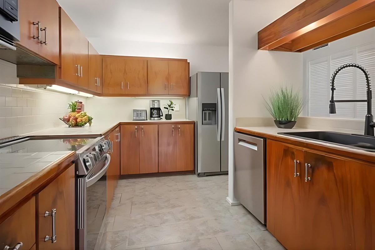 The 3-bedroom unit features a spacious master suite with king bed and en-suite bath, two additional bedrooms (one with a queen, one with twins), a fully equipped kitchen, living room with ocean-view lanai, and in-unit laundry. The adjoining 2-bedroom unit offers a king master, a queen bedroom, its own kitchen, living area, and private lanai – perfect for splitting costs or giving subgroups their own space. Both units boast modern Hawaiian decor, high-speed Wi-Fi, cable TV, and air conditioning.