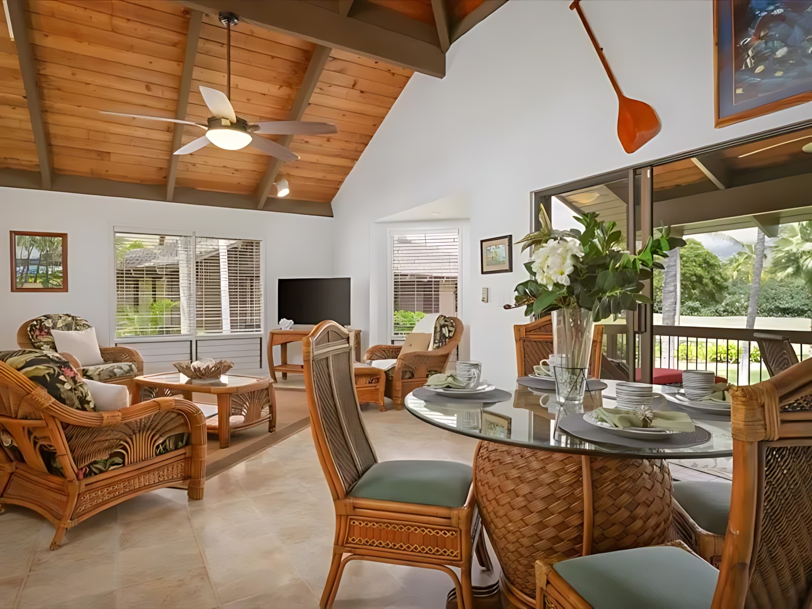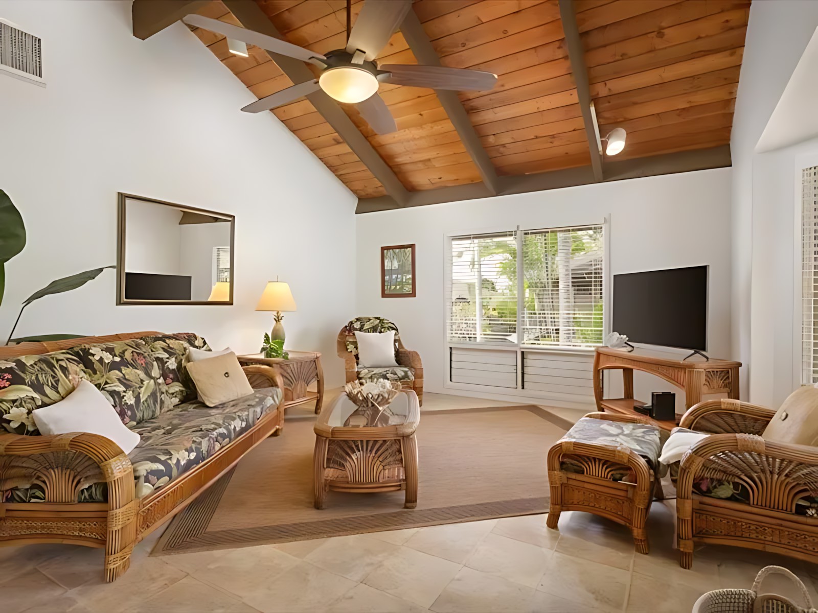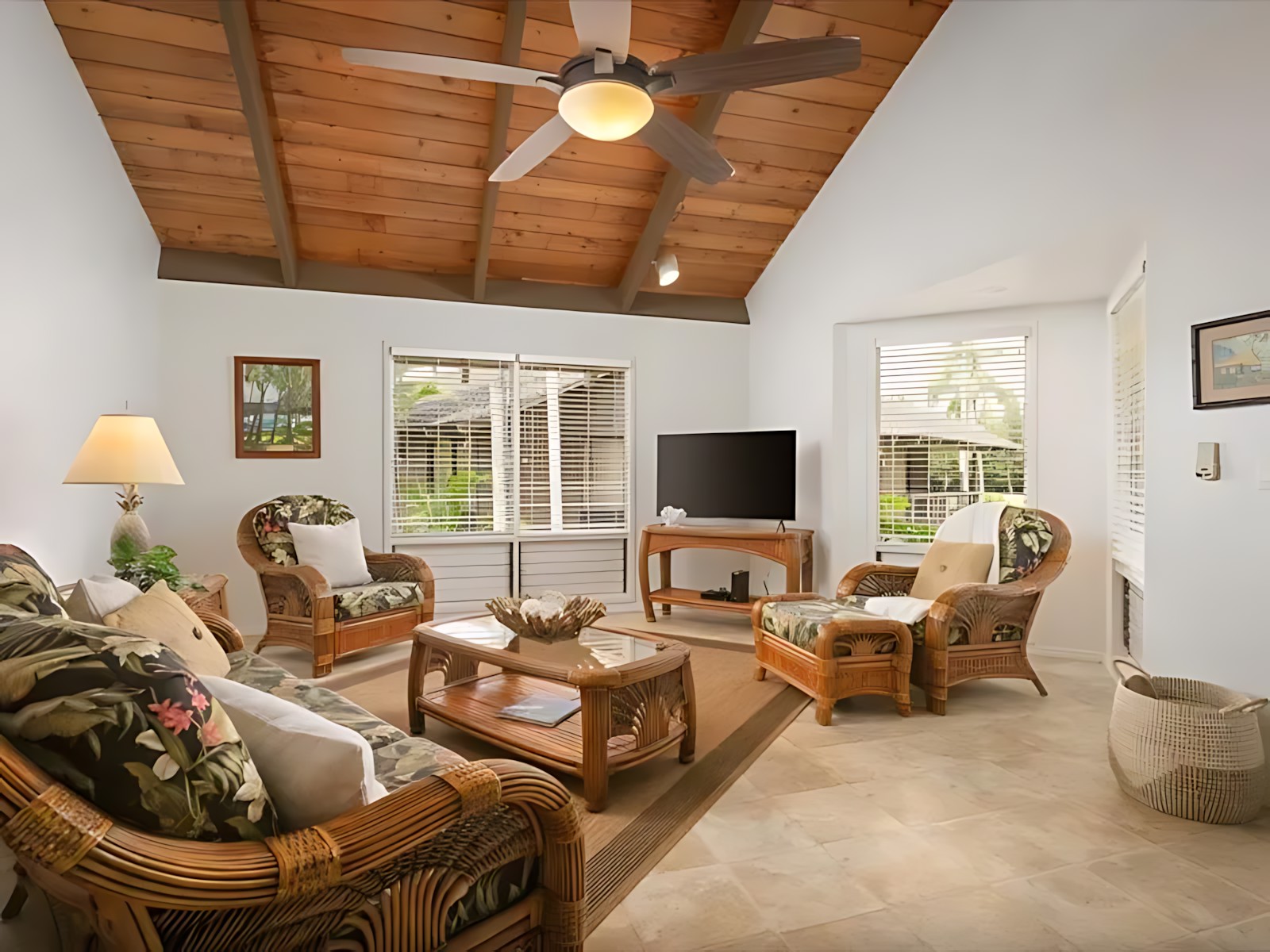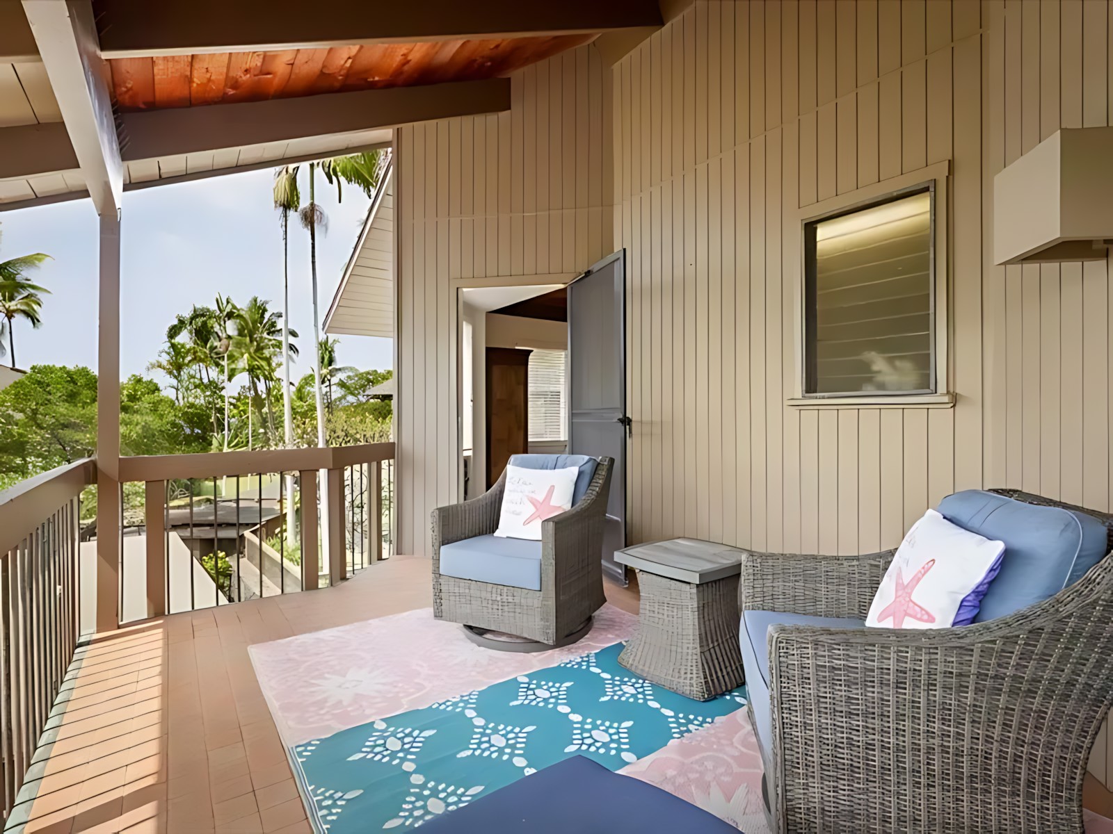 The 3-bedroom unit features a spacious master suite with king bed and en-suite bath, two additional bedrooms (one with a queen, one with twins), a fully equipped kitchen, living room with ocean-view lanai, and in-unit laundry. The adjoining 2-bedroom unit offers a king master, a queen bedroom, its own kitchen, living area, and private lanai – perfect for splitting costs or giving subgroups their own space. Both units boast modern Hawaiian decor, high-speed Wi-Fi, cable TV, and air conditioning.