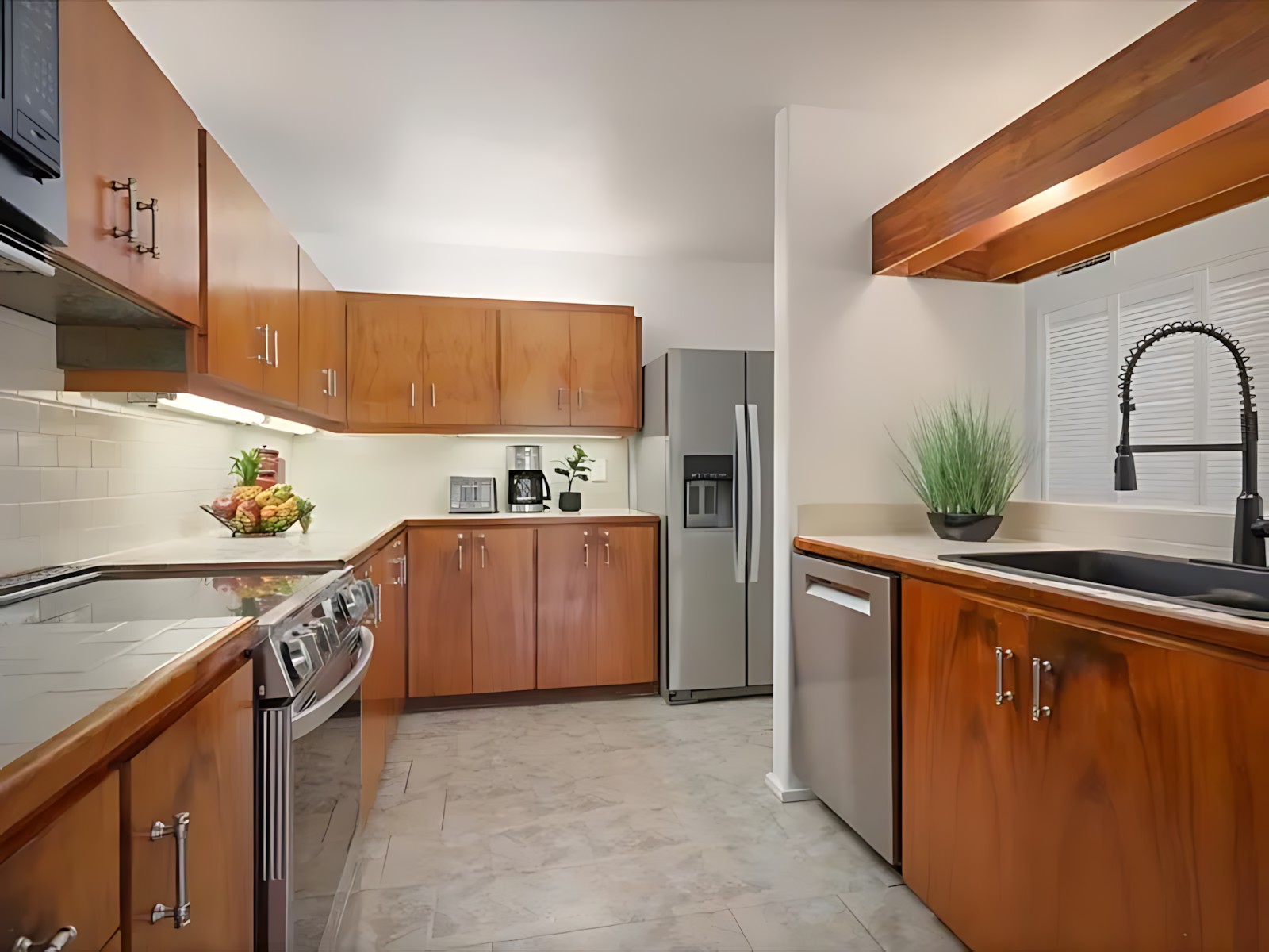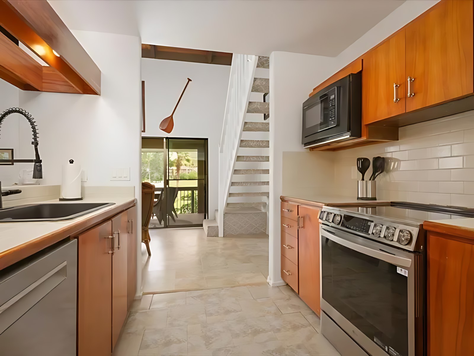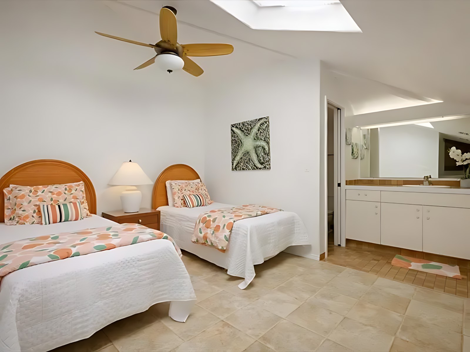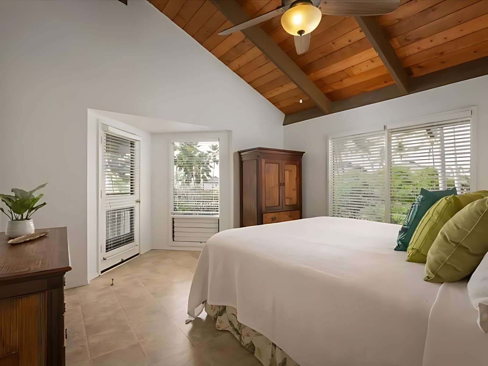 The 3-bedroom unit features a spacious master suite with king bed and en-suite bath, two additional bedrooms (one with a queen, one with twins), a fully equipped kitchen, living room with ocean-view lanai, and in-unit laundry. The adjoining 2-bedroom unit offers a king master, a queen bedroom, its own kitchen, living area, and private lanai – perfect for splitting costs or giving subgroups their own space. Both units boast modern Hawaiian decor, high-speed Wi-Fi, cable TV, and air conditioning.