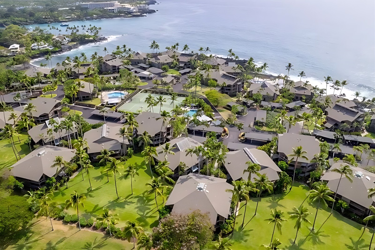 Step outside to the gated Kanaloa at Kona resort, where you'll enjoy three swimming pools (including an oceanfront infinity pool), hot tubs, BBQ areas, tennis courts, and lush tropical gardens. Just minutes from Keauhou Bay for snorkeling, kayaking, and manta ray tours, and a short drive to Kailua-Kona town for shopping, dining, and historic sites. Whether you're lounging by the sea, exploring the Big Island's volcanoes, or relaxing with sunset cocktails, this condo duo offers the best of island living without the hassle.